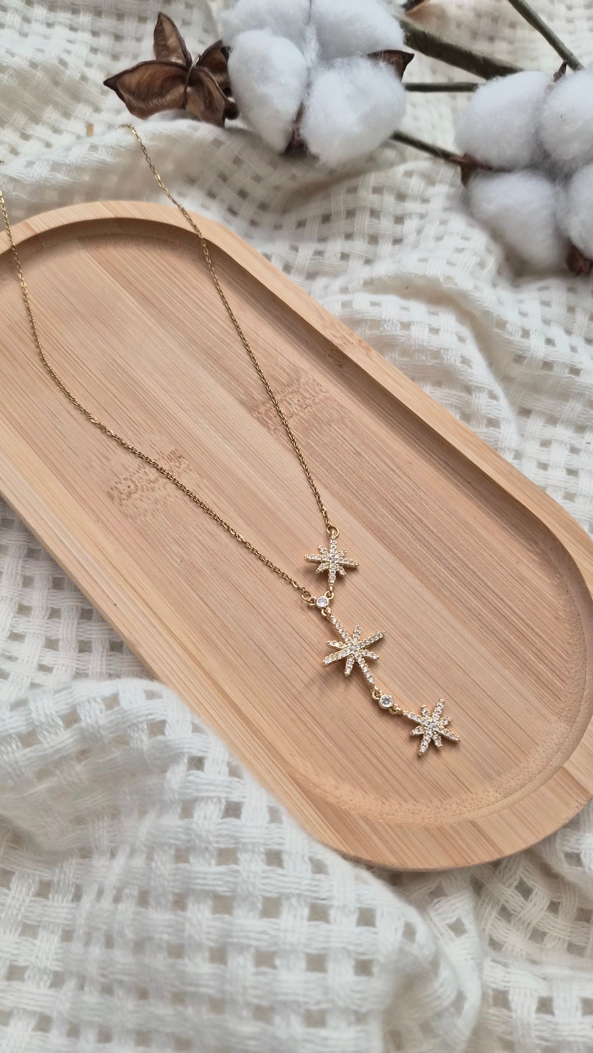 Élégant et lumineux, le collier Noctis met en valeur une étoile à 8 branches scintillantes. Symbole de guidance et d’éclat, il se porte aussi bien au quotidien que pour sublimer une tenue de soirée.